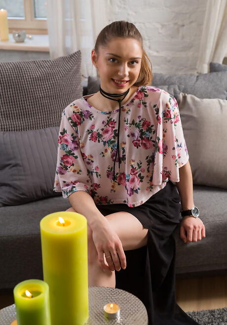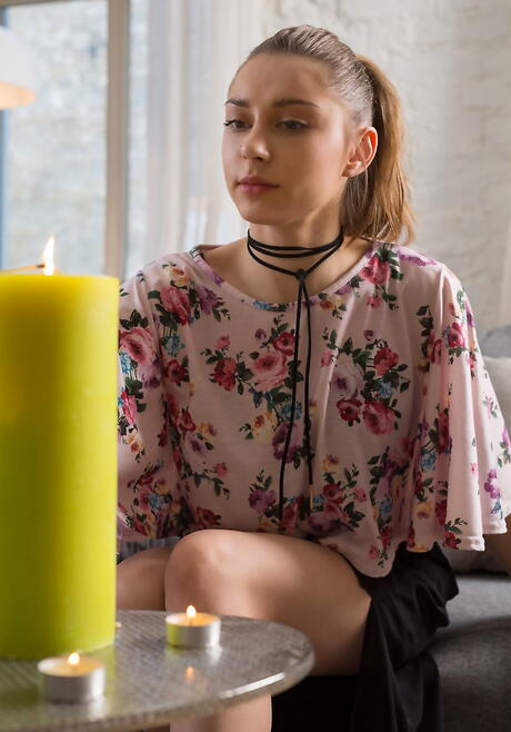 Sylphlike teen Lena Raz uncovers tiny tits and shaved pussy