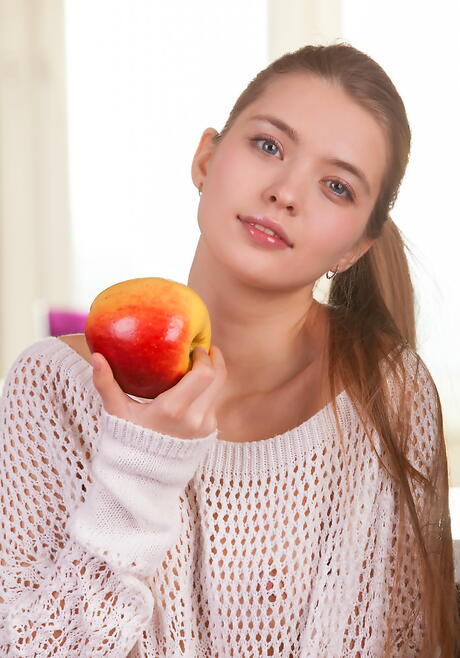 Sylphlike teen Sigrid showing small tits and shaved pussy