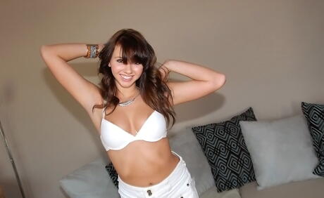 Sylphlike teen Zoey Ray in hot lingerie reveals big knockers and spreads her legs