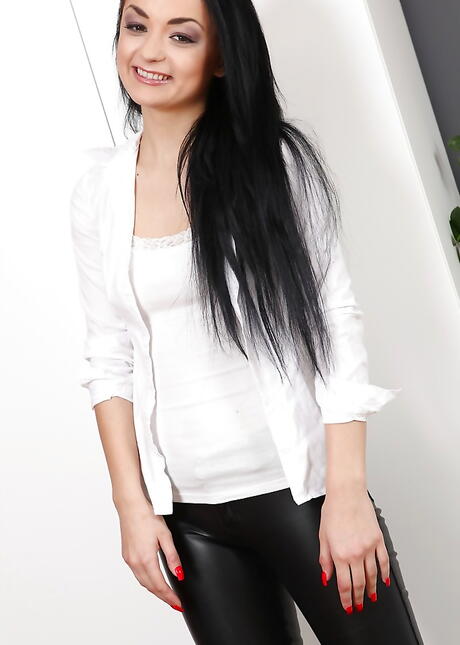 Sylphlike ukrainian brunette youthful Daphne Klyde reveals her butt in and jerking off