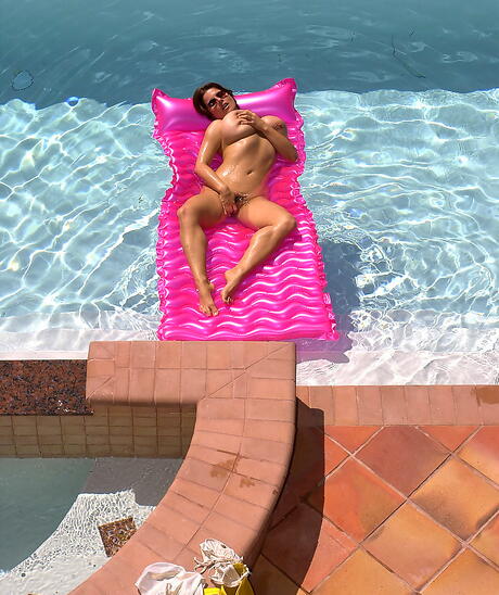 Tempting german dark-haired milf Chloe Vevrier exposes big tits and spreads her legs at pool