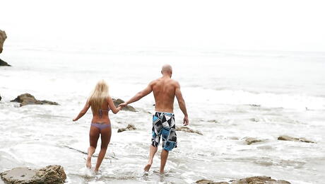 Tempting hungarian porn star Jessica Moore fucked in her shaved pussy after good blowjob at beach