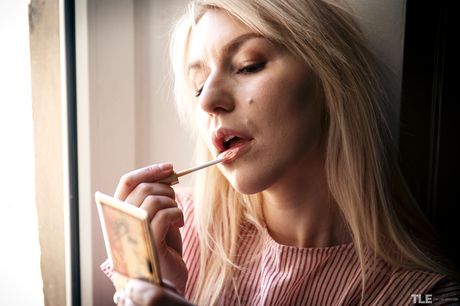 Adora Rey takes off her stockings and lingerie and masturbates her pussy