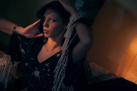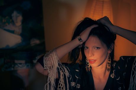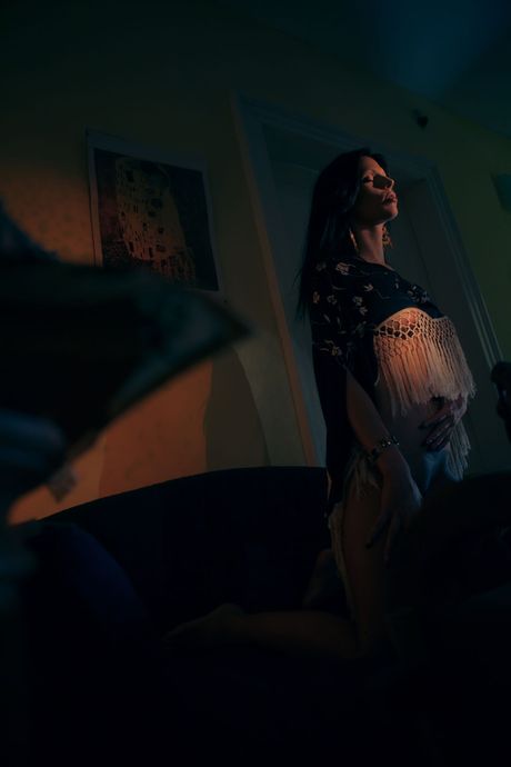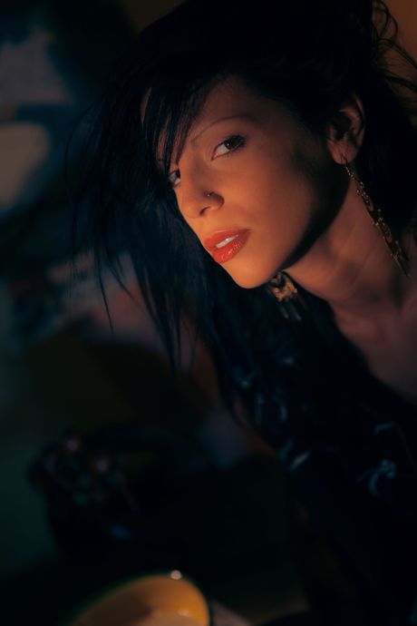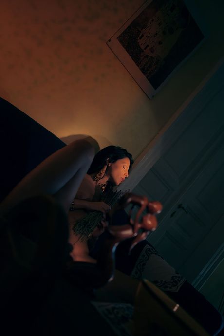 Alluring teen Alissia Loop removes black lingerie to pose nude on a sofa