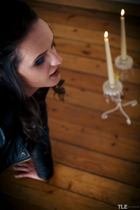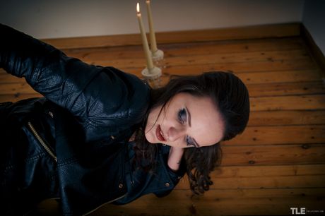 Alluring teen Maria Z masturbates with a ruler while wearing leather pants
