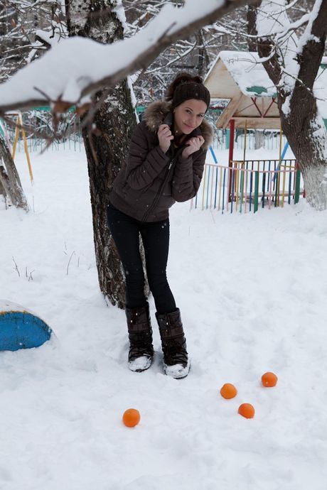 Alluring teen Subil A in boots & panties posing naked outdoors for glam pics