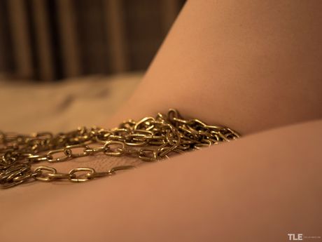 Ayza is draping golden chains over her perfect, naked curves as she caresses herself