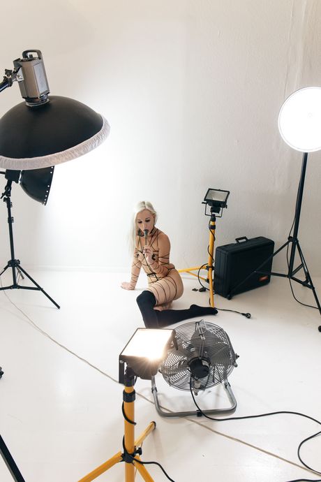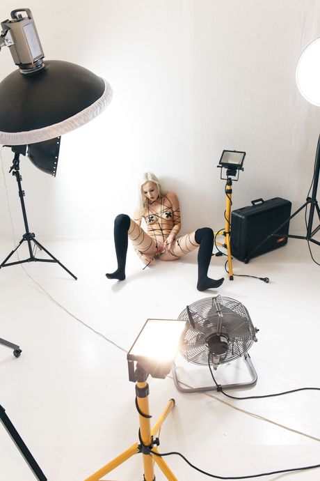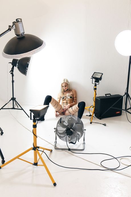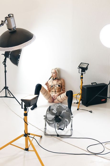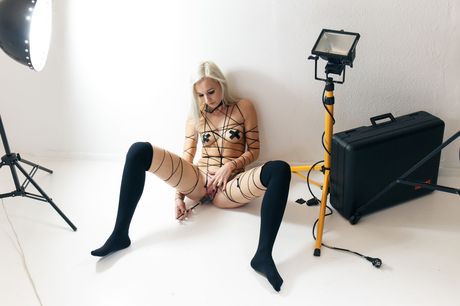 Blonde teen Adelina White masturbates with a screwdriver after a casting