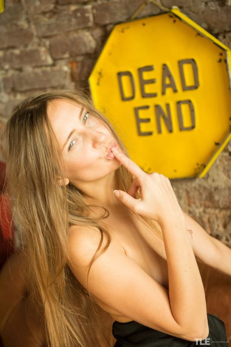 Blonde teen Alexandra F masturbates with a dildo after waking up naked on a couch