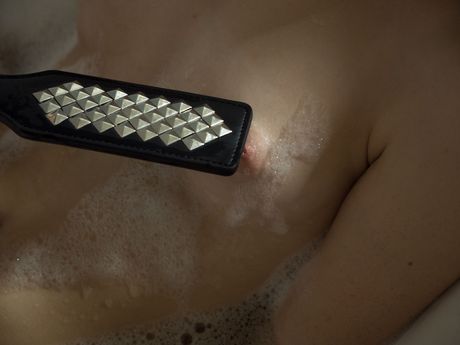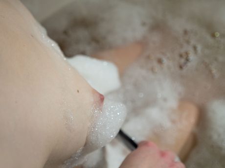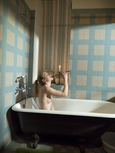 Blonde teen Emma O spanks her bare ass before soaking in a bathtub