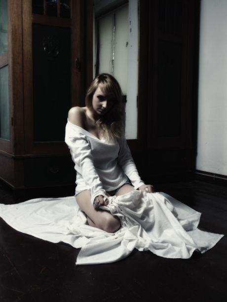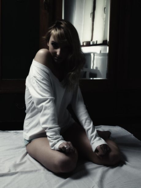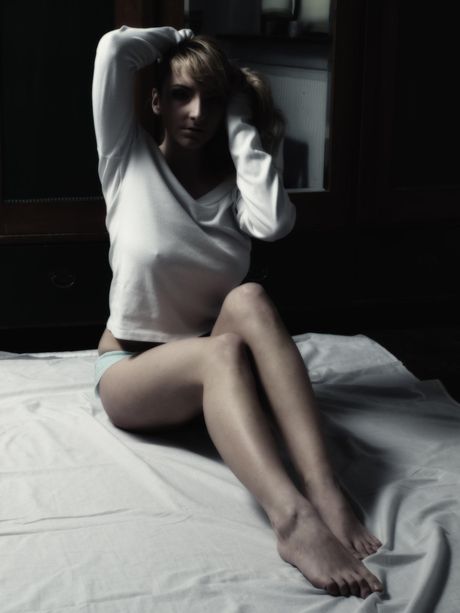 Blonde teen Ewelina removes her bikini and poses nude on her bed