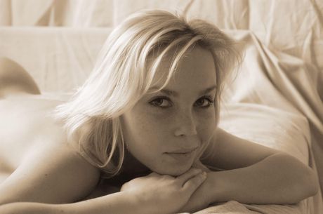 Blonde teen Inka hits upon great nude poses on top of her bed Gorgeous