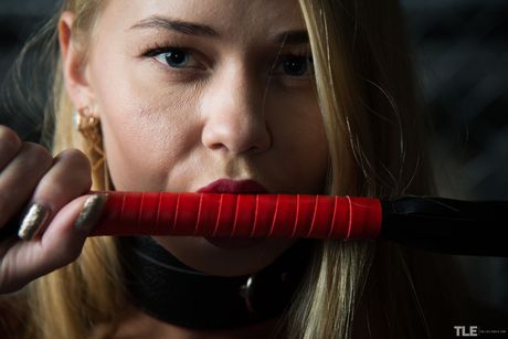 Blonde teen Sarika A pleasures her pussy with a carrot in a dungeon
