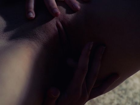 Blonde teen Shanty fingers her pussy while naked on a sandy beach