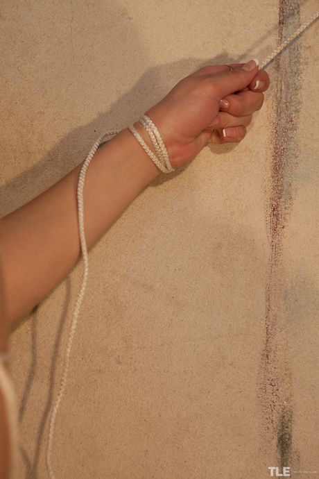 Blonde teen Simona A fingers her pussy while wearing a ball gag
