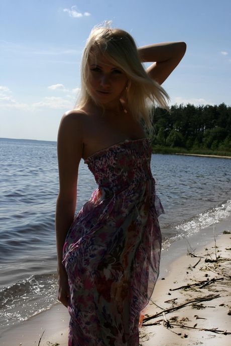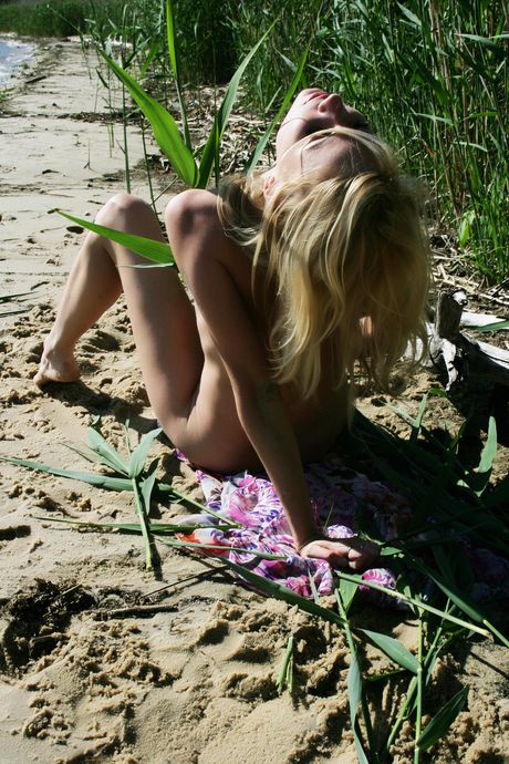 Blonde teen Tanusha A gets naked on a beach and in a cave
