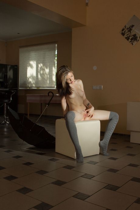 Blonde teen Zara O fingers her pussy while wearing white knee socks
