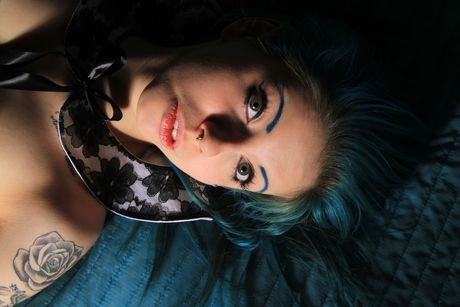 Blue-eyed teen Emily R removes pantyhose and stockings to get totally naked