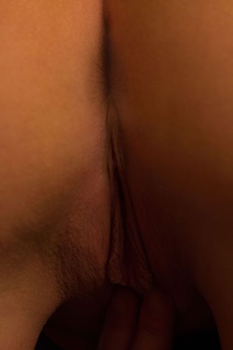 Brunette babe Alta B unveils her big tits and masturbates on the couch