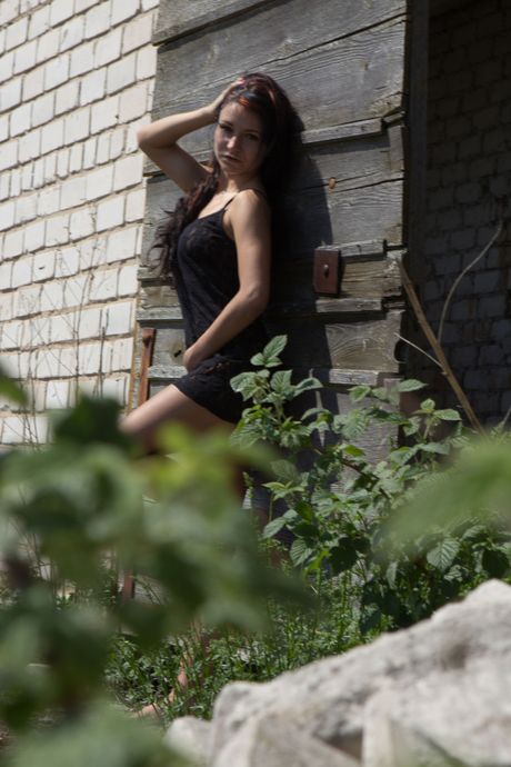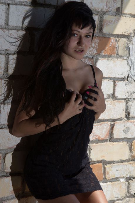 Brunette babe Cherry O unveiling big natural teen tits outdoors
