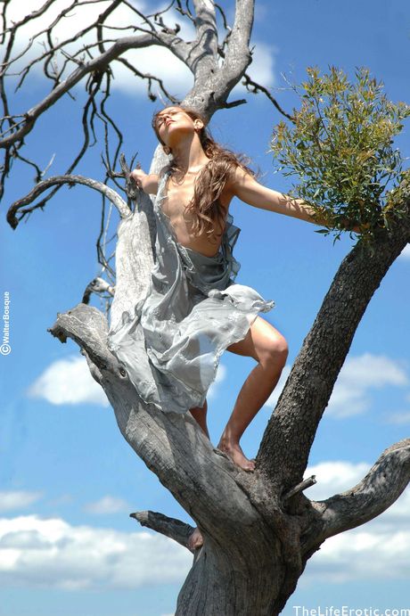 Brunette babe Valeria strips outdoors and displays her small tits & hot body