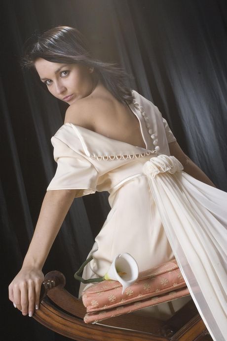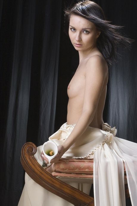 Brunette chick Neegel removes a bikini to get naked on a bed