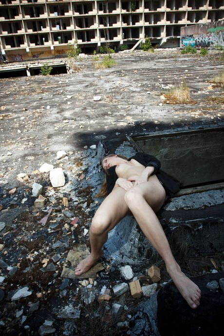 Brunette teen Alice Smith strips naked in public before a finger fuck
