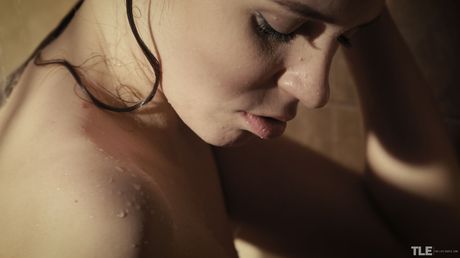 Charming teen Kalisy masturbates with a dildo while taking a shower