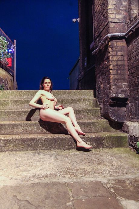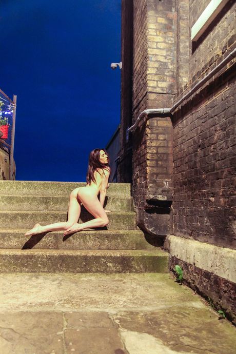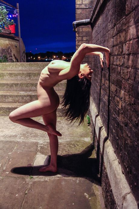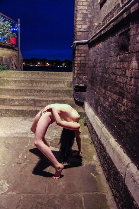 Charming teen Samantha Bentley poses nude in the backyard & flaunts her flexibility