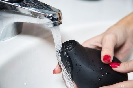 Cindy Shine takes off her red latex dress and she washes her body in the bath