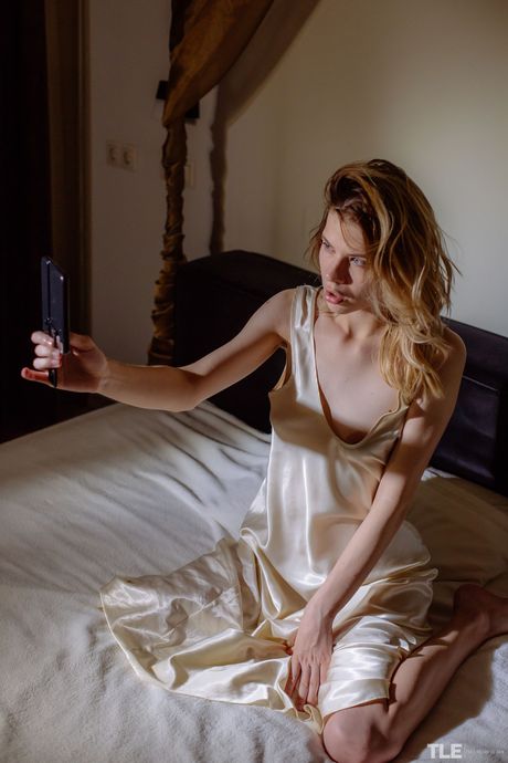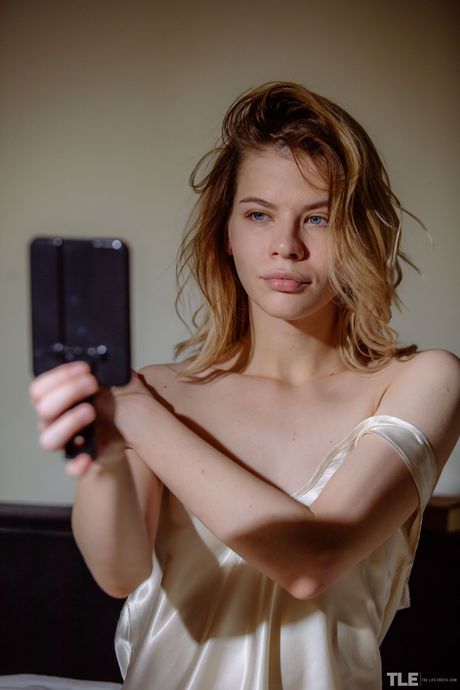 Cute teen Crystal Maiden masturbates her shaved pussy in the nude