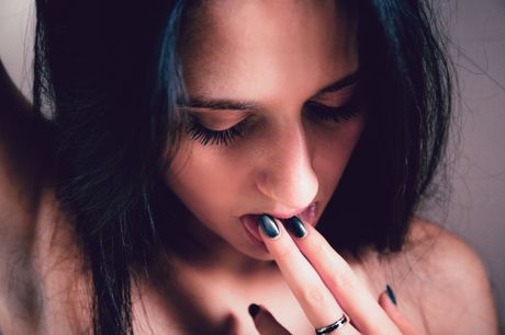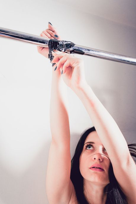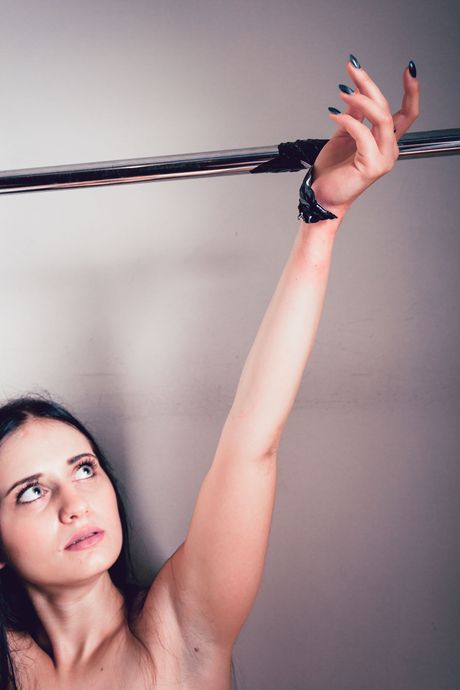 Cute teen Eva Kahil frees her beautiful body from black stockings