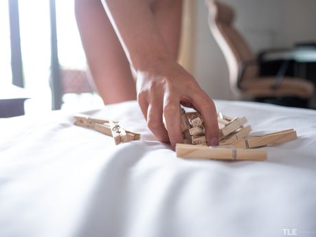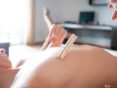 Cute teen Lil Karla plays with her pussy while wearing a collar and leash