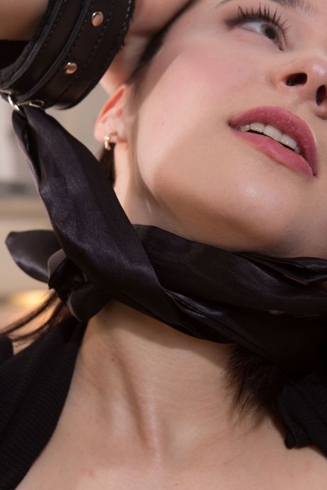 Cute teen Ruta removes her cuffs before masturbating in a kitchen
