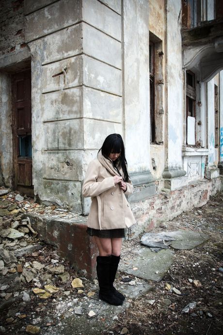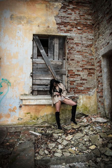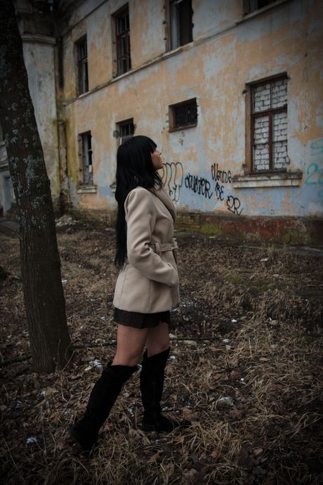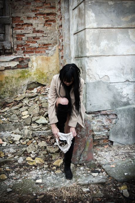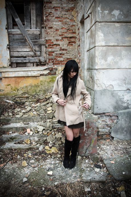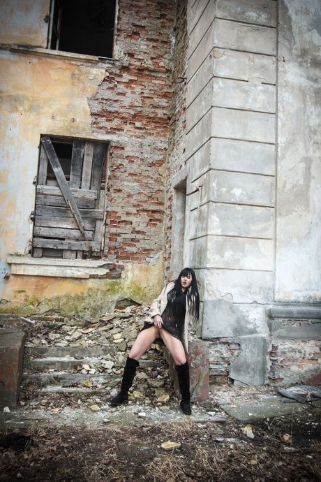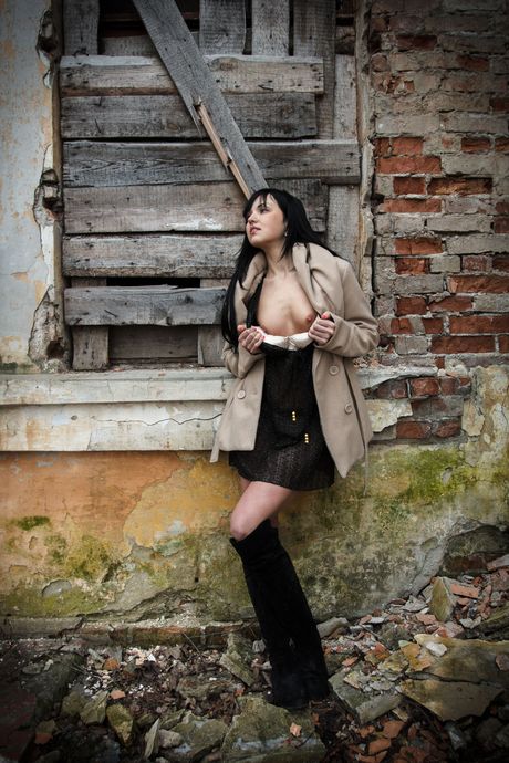 Dark haired teen Lexi B fingers her pussy on a snowbank in winter boots