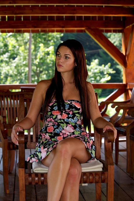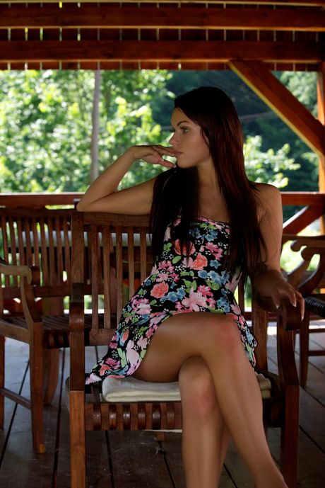 Delicate teen Frida C toys her pussy with a dildo on a patio
