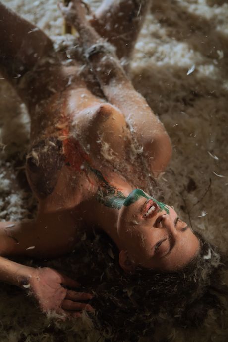 Delicate teen Raeah toys her pussy with a feather dildo in a solo