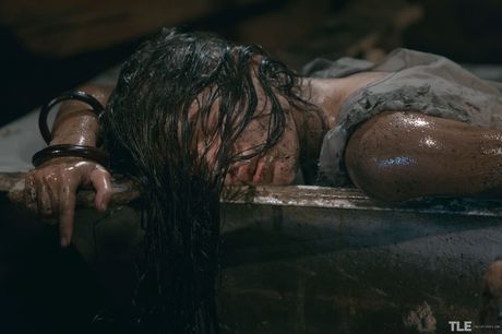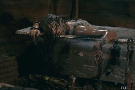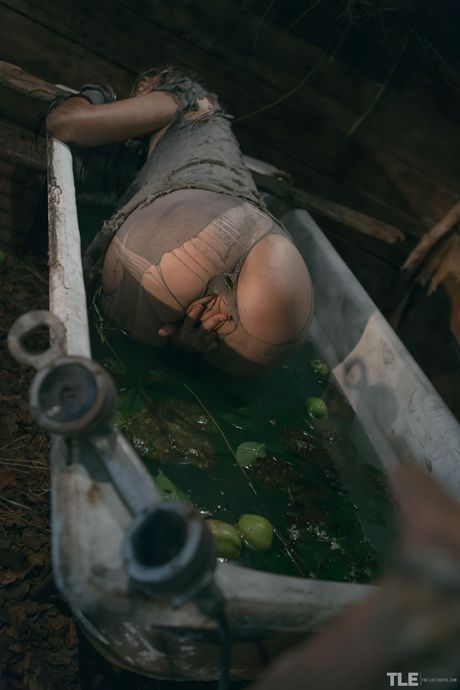 Emily J masturbates with a corn cob in the bathtub, squirming in the water