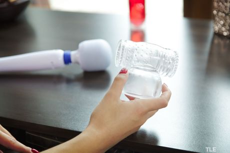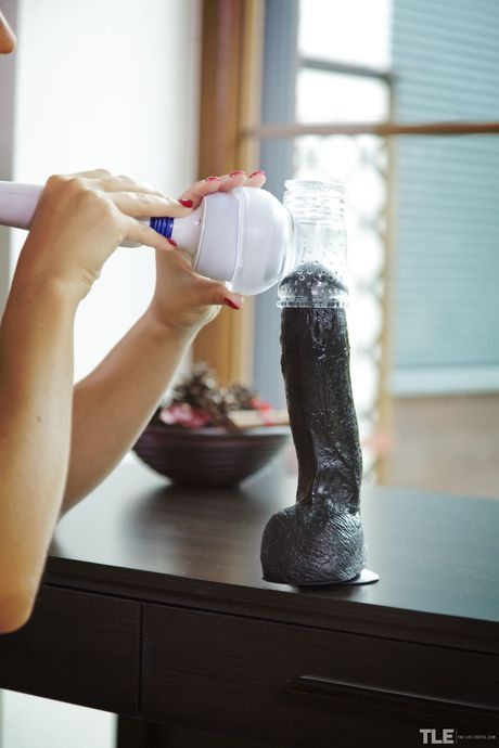 Endearing teen Ornella removes her stockings before masturbating with a dildo
