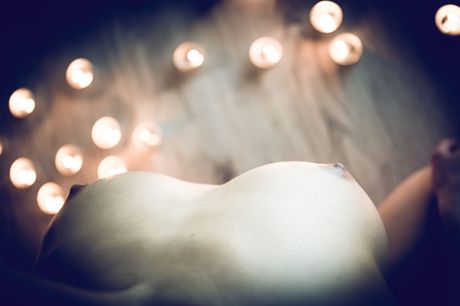 Flexible Marlyn shows off her naked body and oils her big tits and ass