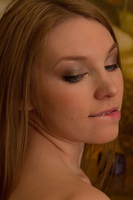 Flexible redhead Amber A removes her lingerie to masturbate in black stockings