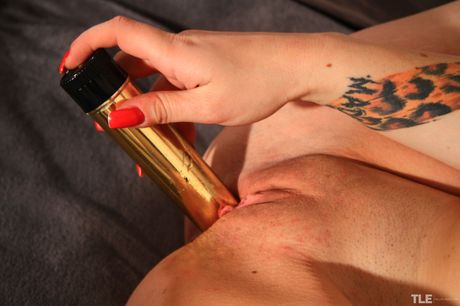 Foxy Sanie strips off her black lingerie and teases her pussy with the golden