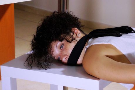Gwen H is bound to a chair as she masturbates with a vibrator