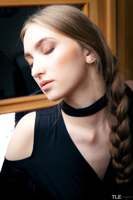 Hannah A oils her feet and toes before rubbing her pussy with them