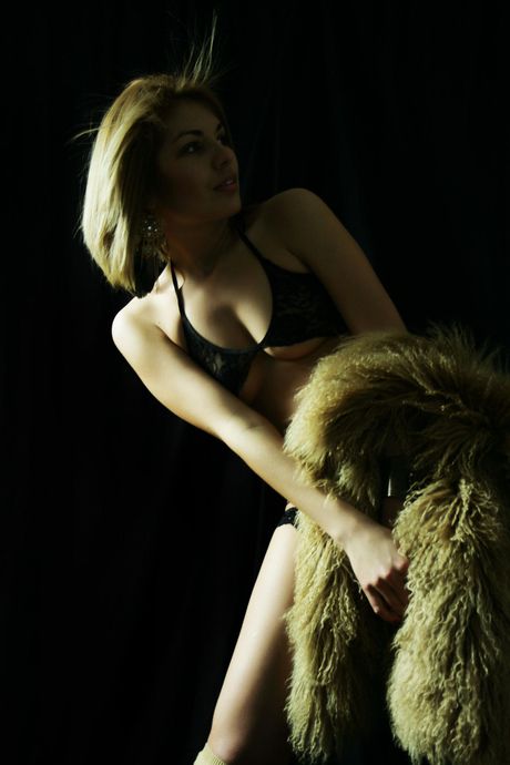 Hot blonde Nika S strips to her socks and boots in a solo shoot
