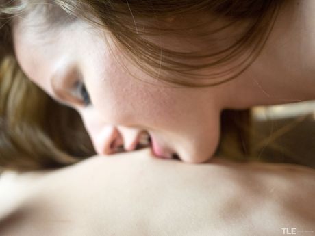 Hot lesbians Ayza & Anna G kiss before licking pussies on a dining table