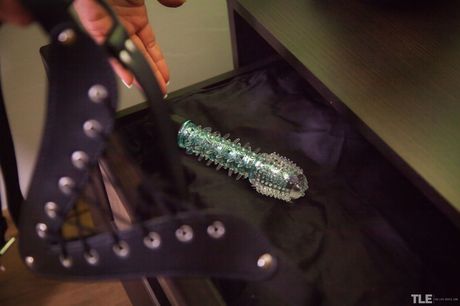 Hot teen Lexi Dona removes her maid uniform before masturbating on a bed