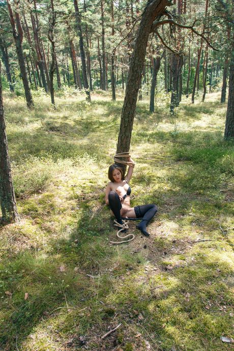Hot teen Mira V in stockings & rope spreading to show her shaved pussy