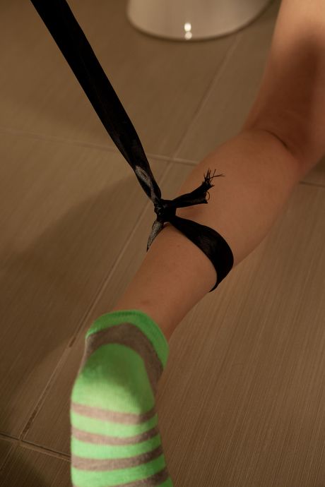 Inked teen Zara D bares it all in the bathroom & plays with her pussy