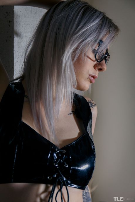 Kate Fresh strips off her black PVC pantyhose and panties and plays with her pussy